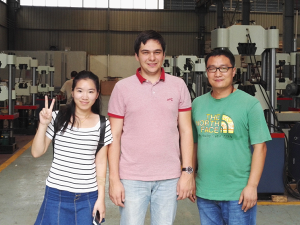电子万能试验机作为济南辰达试验机制造有限公司的主打三大类试验机之一,在国内外市场占有相当的份额。图为俄罗斯客户到公司考察合作。 配合不同的试验附具,电子万能试验机可完成各种金属、非金属材料、安全、土工、建工、建材类成品的检验工作。具有广泛的应用前景。